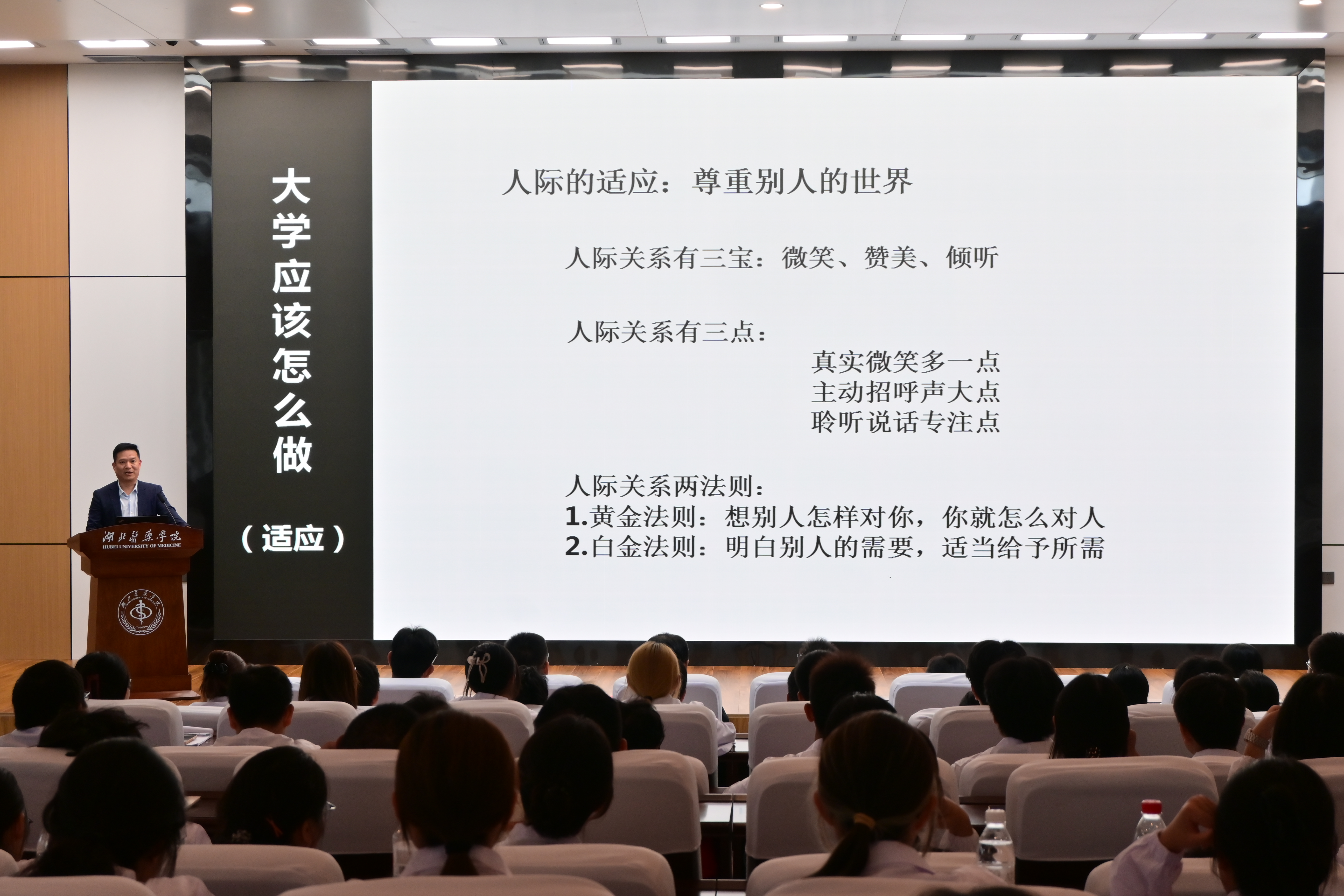 刘岳则为同学们上了职业生涯规划第一课,从目标确立、方法探寻、坚守初心三方面为新生厘清成长方向。