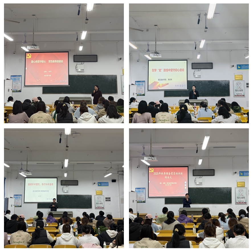 本网讯(通讯员 彭孟琦)11月1日,第三、第四、第五临床学院联合在5114教室举办2025年秋季分党校培训。来自三个学院的106名预备党员参加了此次集中培训。为兼顾教学安排与地域分布,襄阳及随州校区的预备党员学员通过线上方式同步参与学习。