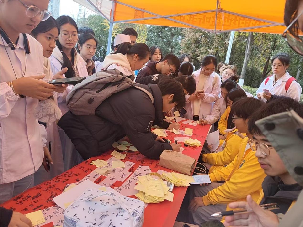 活动现场,同学们结合医学专业视角与生活体验,分享对医患沟通中的包容、多元文化中的尊重等话题的思考,用真诚表达诠释宽容的深层内涵;“温情寄语征集”环节中,大家在便利贴上写下“以仁心待差异,以宽容暖校园”“医路同行,包容为翼”等10字以上寄语,字里行间满是对和谐相处的期许,这些承载心意的便签被精收集于纸箱中,成为校园宽容文化的珍贵见证;“横幅签名承诺”环节将活动推向高潮,同学们有序在“容以致远”横幅上签下姓名,以庄重仪式感立下尊重差异、反对偏见的青春承诺,红色横幅上的密密麻麻的签名,成为当天最动人的风景线。