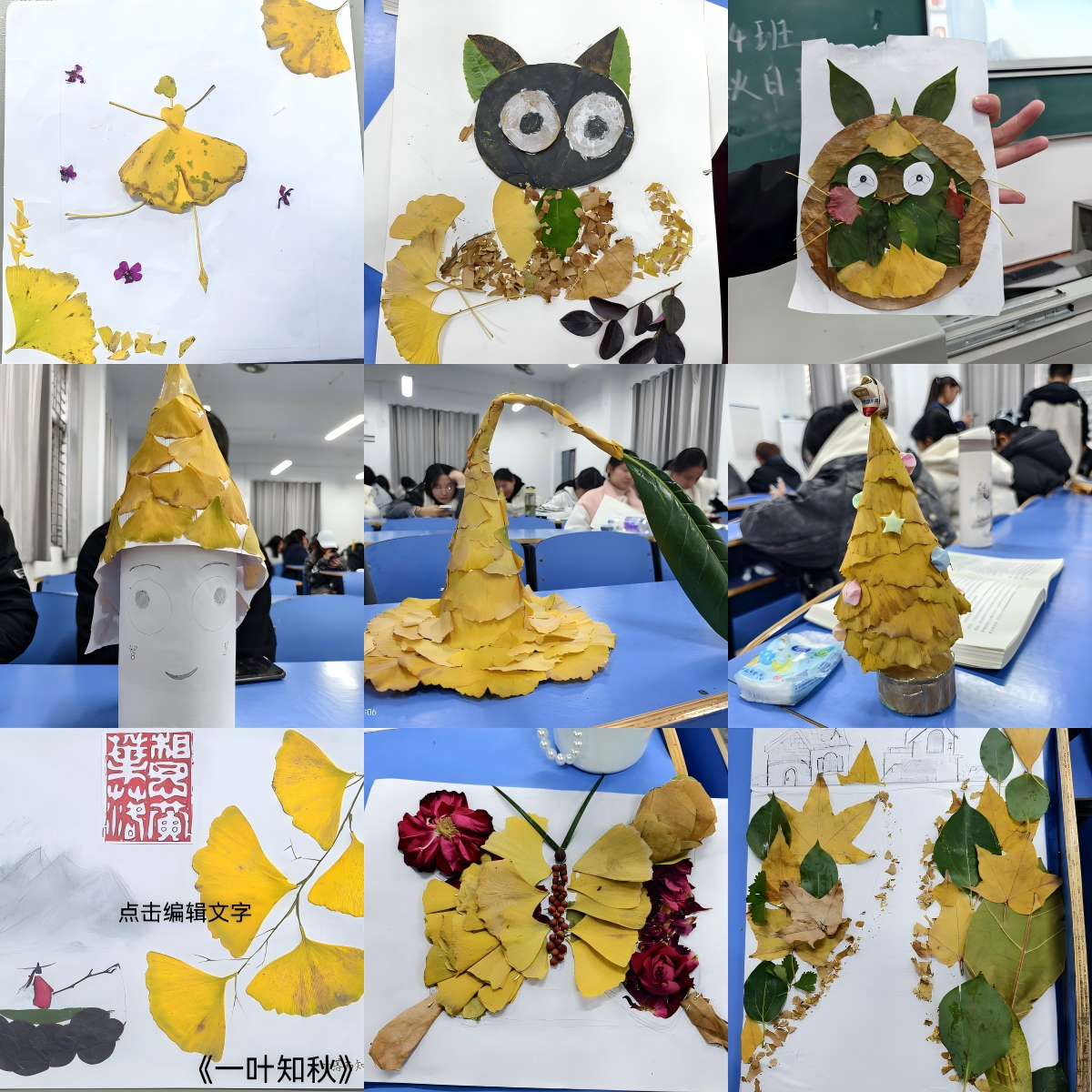 作品展示环节,每个寝室的代表依次上台展示他们利用树叶精心创作的图画或手工作品。每一件作品都独具匠心,有的将叶片拼贴成生动的动物形象,有的则构建出意境深远的自然景观。同学们还简要介绍了创作理念,充分展现了丰富的想象力与细腻的动手能力,其中不少作品尤为引人注目。