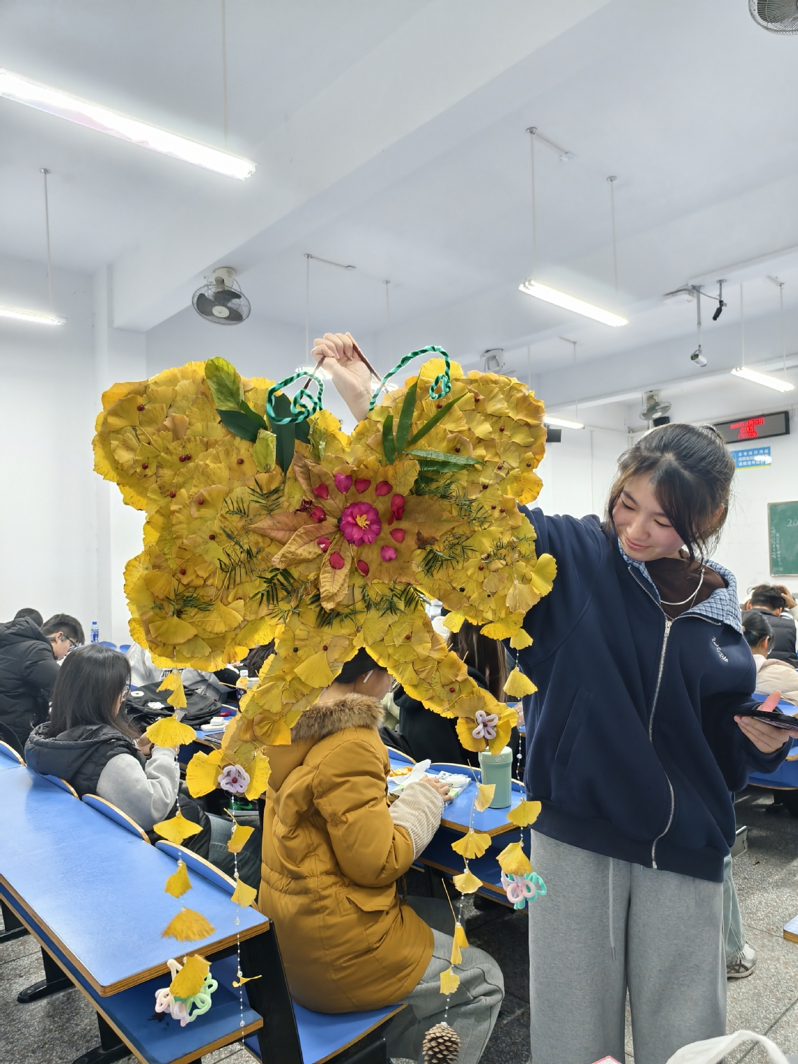 汇岚C444寝室的《哈基米枫原万叶》也令人惊叹,用各类树叶拼贴的小猫形象与代表秋天的“枫原万叶”元素都无比精致,其中用银杏叶制作的黄玫瑰更是锦上添花。此外,意境悠远的《一叶知秋》、艺术气息浓厚的《有钱没钱回家过年》、精美别致的《蝶恋花》等作品,也都凝聚了同学们的巧思与心血,共同构成了一场精彩纷呈的秋日创意盛宴。经现场投票评选,汇岚C439寝室的《巴特福来》众望所归,荣获一等奖;汇岚C441寝室作品获得二等奖;汇岚C444寝室的《哈基米枫原万叶》获得三等奖。