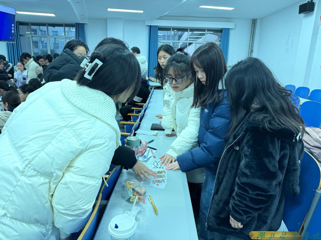 开场的“生物进化”游戏在《APT.》活力韵律中激情开启。同学们以“鸡蛋”之姿踏上进化征途,猜拳声与音乐节奏共鸣,“鸡蛋、小鸡、凤凰”角色切换迅速,现场欢呼、惋惜声此起彼伏,为活动注入蓬勃动力的同时压力瞬间释放,开启自我探索与团队协作新篇。“寻找另一个我”和“大咖面对面”环节,同学们依配对卡探寻契合灵魂,两两相对,5分钟内深度访谈,问题往来、思想碰撞、经验共享,彼此携手奋进,为学业拼搏筑牢心理支撑。“比比谁厉害”活动中,6人小组为组牌面全力冲刺,5分钟限时赛毕,牌局揭晓悬念,“萝卜蹲”惩罚添趣。赛后深度分享自身于团队中的表现与成长轨迹,清晰洞察团队合作时主动沟通、果敢决策、灵活应变的关键价值。(审核 郑建超)