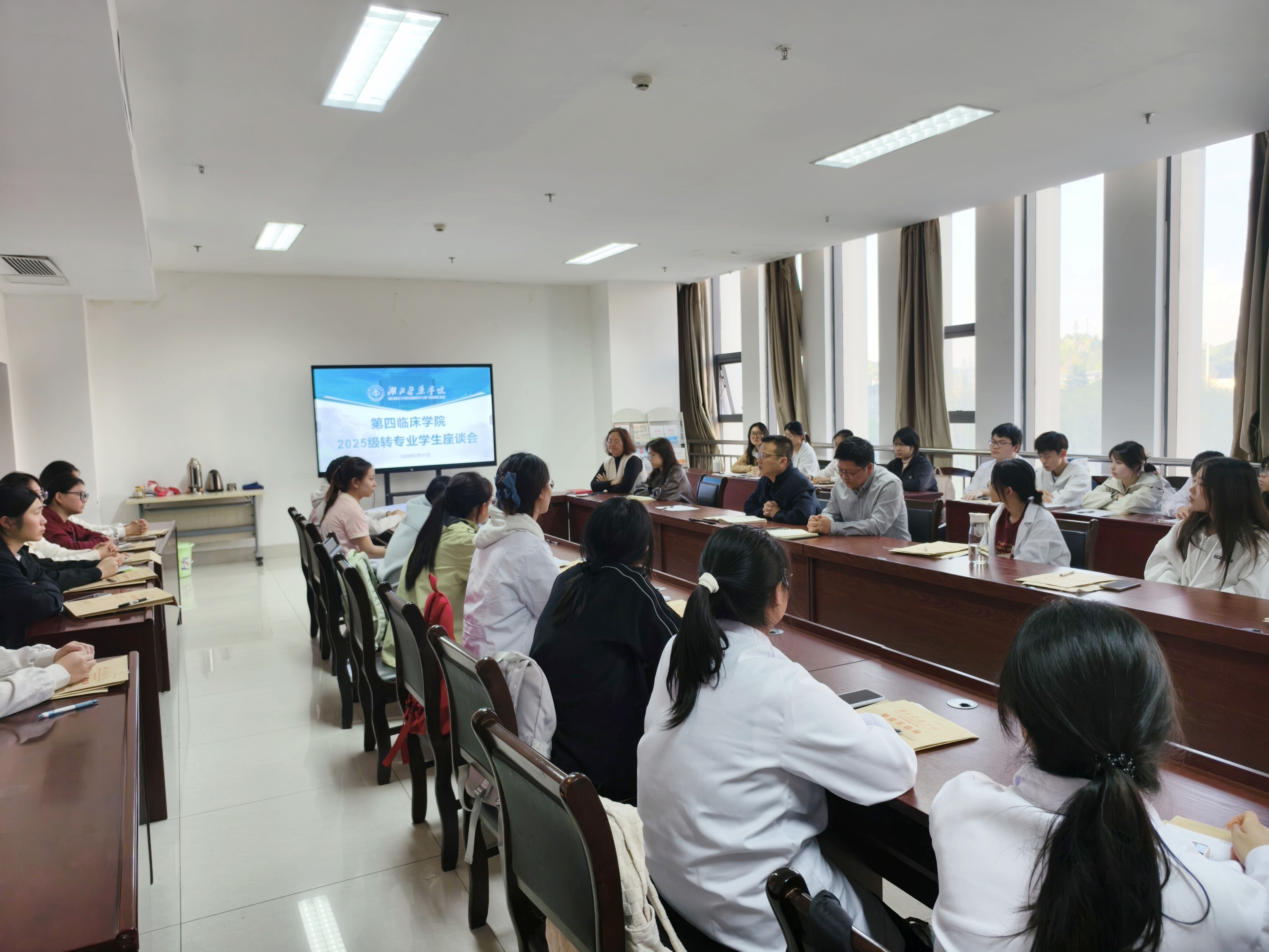 李玲重点介绍了学院的学业制度,结合教务系统演示了课程转换和重修报名的操作方法,希望同学们尽快完成相关工作。陈业史介绍了学院学生组织和特色活动的具体情况,鼓励同学们在活动和工作中锻炼综合能力。龙月娇围绕早晚自习、考勤、诚信应考、推优入党、请销假制度、违纪处分、档案等内容做了说明,要求同学们严格遵守校纪校规,共创优秀班集体。郑建超介绍了襄阳校区的办学情况,重申了学院的学风建设相关制度,结合往年转专业学生的现实表现,希望同学们尽早树立目标,能在优良的学业成绩的基础上更进一步,做有为医学生。