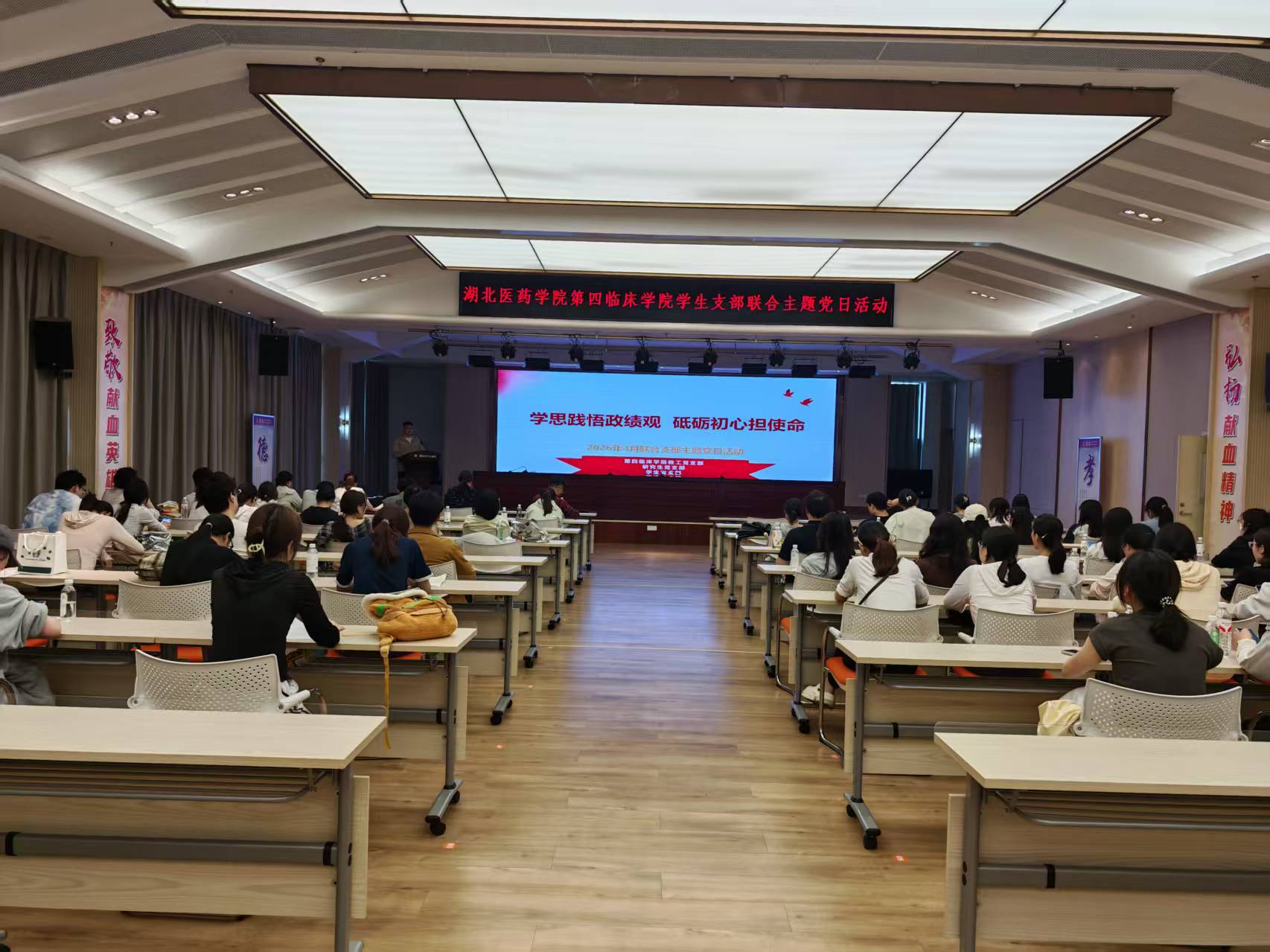 活动在襄阳市中心血站会议室规范开展。集中学习阶段,全体党员学习了习近平总书记重要文章《树立和践行正确政绩观》、“丹江口库区整体保护” 纳入生态环境法典及省委第二巡视组巡视学校党委工作动员会精神等内容交流体会时,党员们结合医学生身份踊跃发言、畅谈感悟。大家表示,作为新时代医学生党员,践行正确政绩观,就是要扎根专业、勤学苦练,摒弃浮躁心态,把个人理想融入医疗卫生事业,以实干实绩守护人民生命健康,在志愿服务与公益行动中彰显青年党员担当。