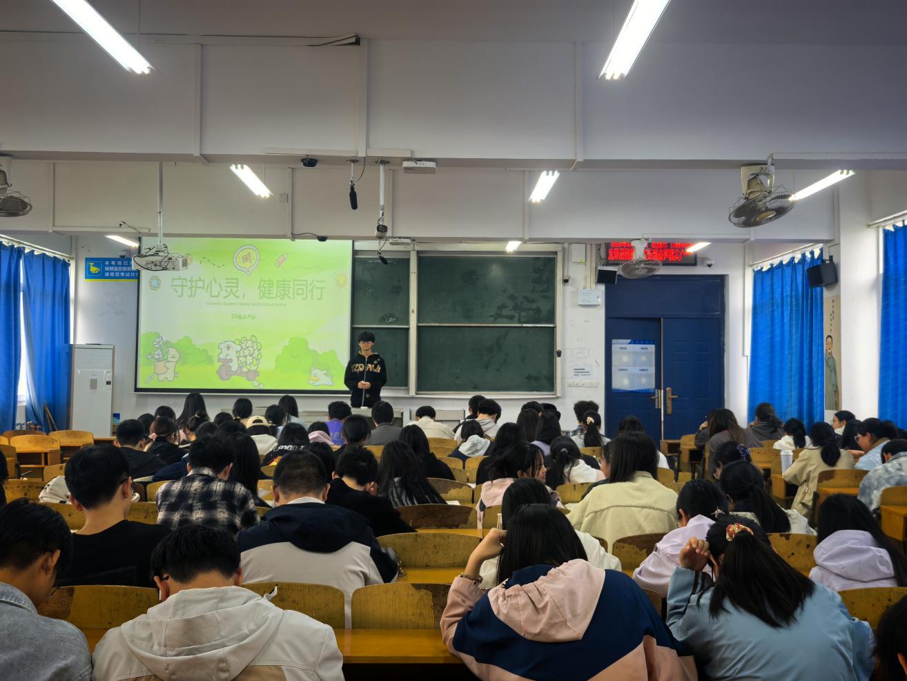 活动伊始,张子豪进行了心理健康常识科普。他结合身边同学的真实困惑,聚焦“习惯性焦虑”“情绪内耗”等大学生高频心理状态,引导同学们识别心理信号、拒绝过度焦虑。同时他还分享“生命的韧性”培养方法,鼓励同学们积极运动、培养兴趣,提高自身心理韧性。
