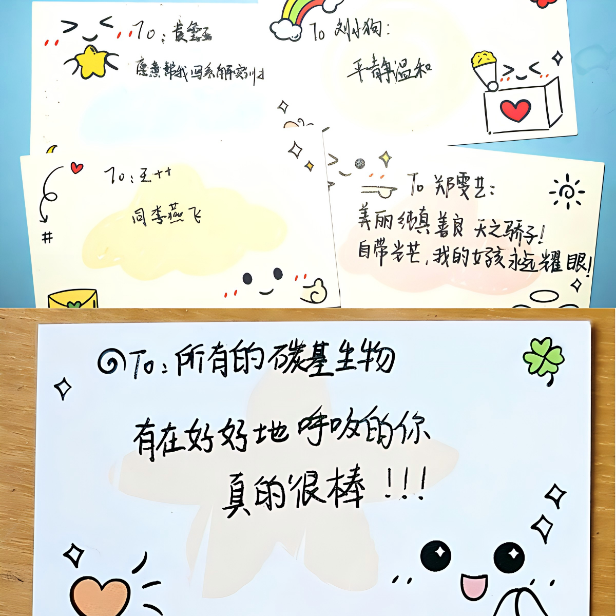 活动互动环节,同学们通过“优点小纸条”匿名写下给同伴的赞美和祝福,其中一句写给全班同学的暖心寄语“你们的每一次好好呼吸都是闪闪发光的”真挚温暖,令人动容;同时大家以“情绪漂流瓶”的形式,写下自己面临的困惑与问题,李姝怡针对同学们的问题逐一暖心解惑。